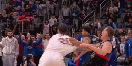 GIF-发球前泰森对邓罗进攻犯规,骑士挑战成功,进攻犯规变邓罗拉人犯规,骑士一罚一掷