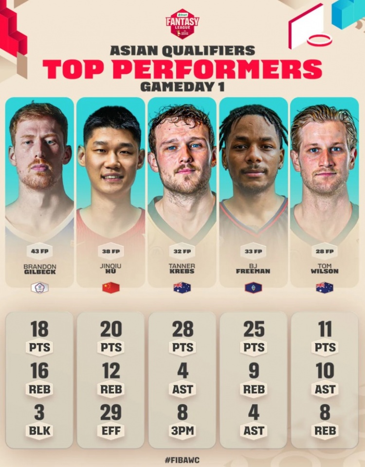 赛后,胡金秋入选了男篮世预赛亚洲区第二窗口期的首日最佳五人阵容。