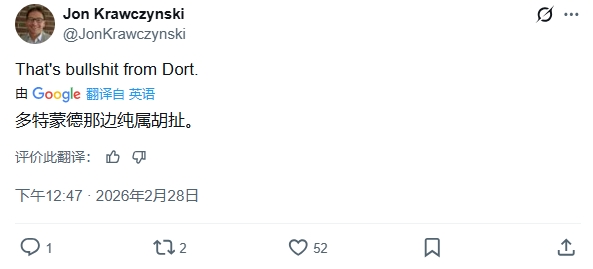 森林狼记者Jon Krawczynski看不下去了:“多特这是个狗屎动作。”