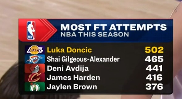 湖人主场迎战国王,东契奇赛季罚球数来到500个,联盟首人。