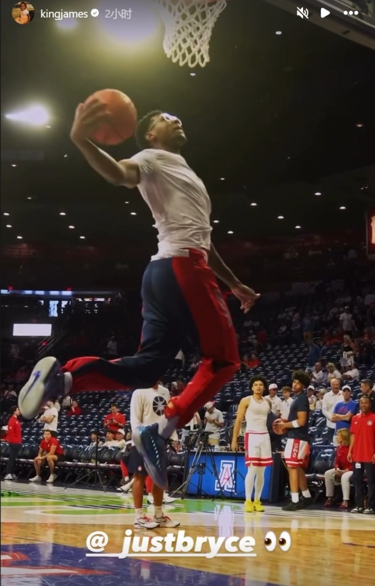 3月4日讯 今天,湖人球星勒布朗·詹姆斯转发了二儿子布莱斯的两记扣篮。