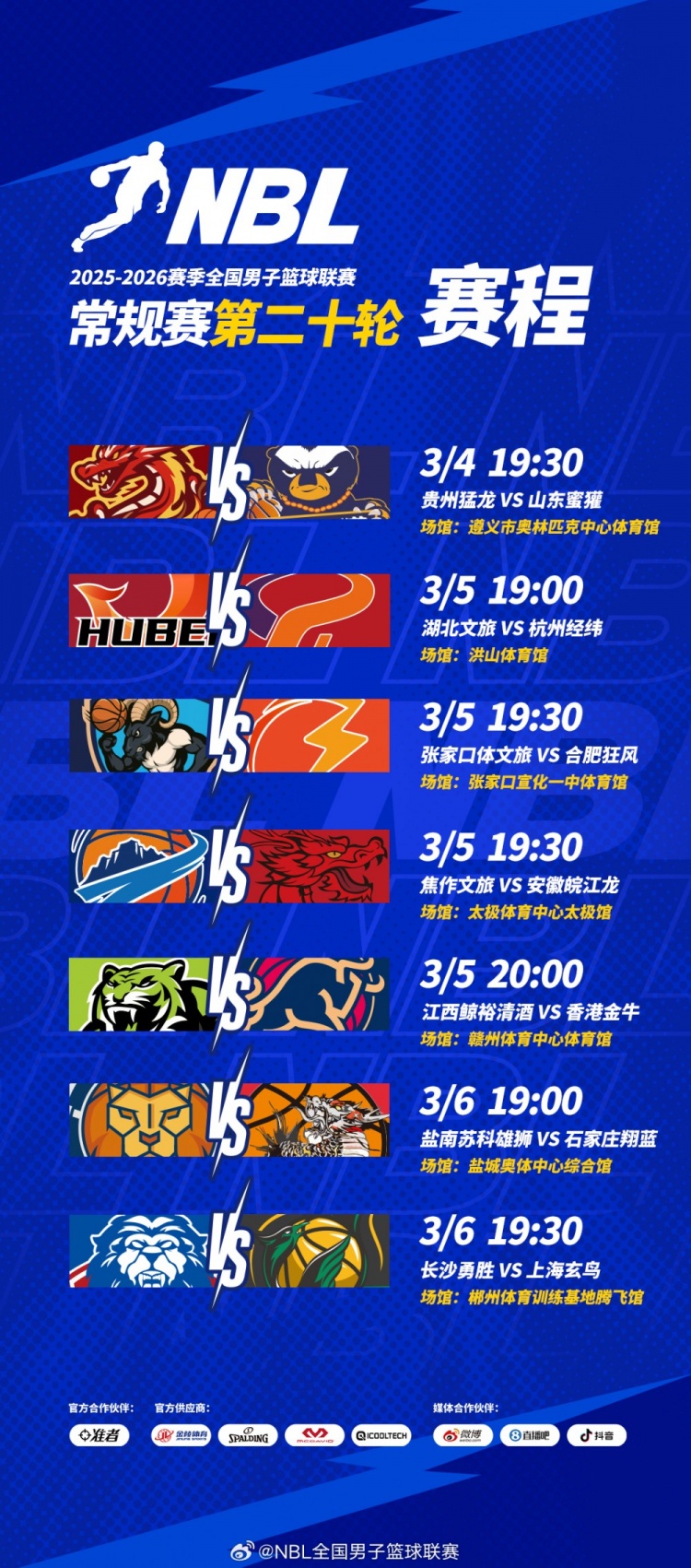 【赛程】NBL常规赛第二十轮将于3月4日-3月6日进行!