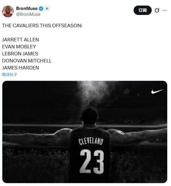 赛后,湖人自媒体BronMuse发推点评,并预想骑士今夏休赛期阵容。