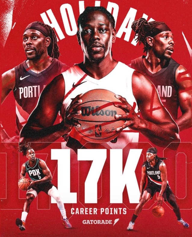 至此,霍勒迪常规赛生涯总得分突破17000大关。