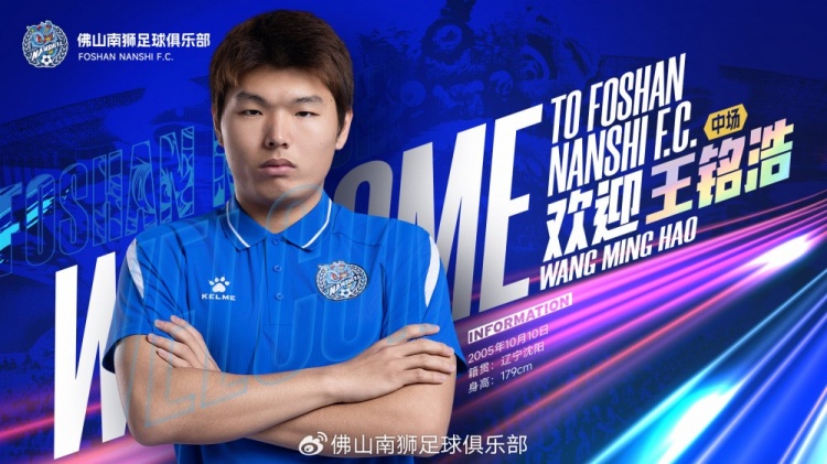 王铭浩的加盟,是对俱乐部中场配置的重要补充,更是着眼于未来的长远储备。佛山南狮足球俱乐部向王铭浩表示最诚挚的欢迎!