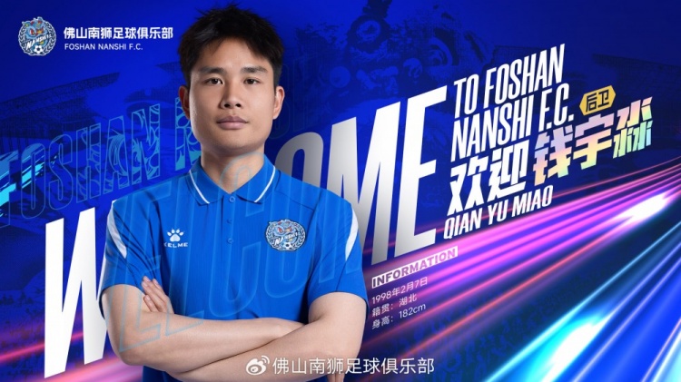 俱乐部对钱宇淼的加盟表示热烈欢迎。他的到来将进一步丰富球队的防守体系与战术变化,增强后防线的阵容厚度。我们期待钱宇淼能将他丰富的中超联赛经验和扎实的防守技术带到佛山,迅速融入球队,在新赛季为佛山南狮的后防线筑起一道坚实的屏障。