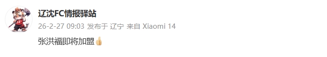 02月27日讯 博主辽沈FC情报驿站消息,17岁恒大足校小将张洪福即将加盟辽宁铁人。