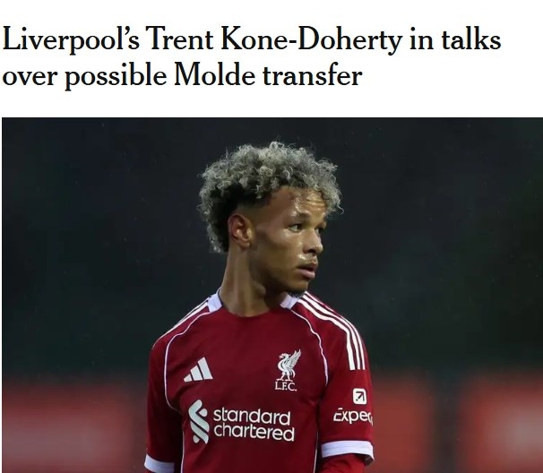 2月27日讯 根据The Athletic报道,利物浦19岁边锋科内-多赫蒂正与挪威莫尔德商谈永久转会事宜。