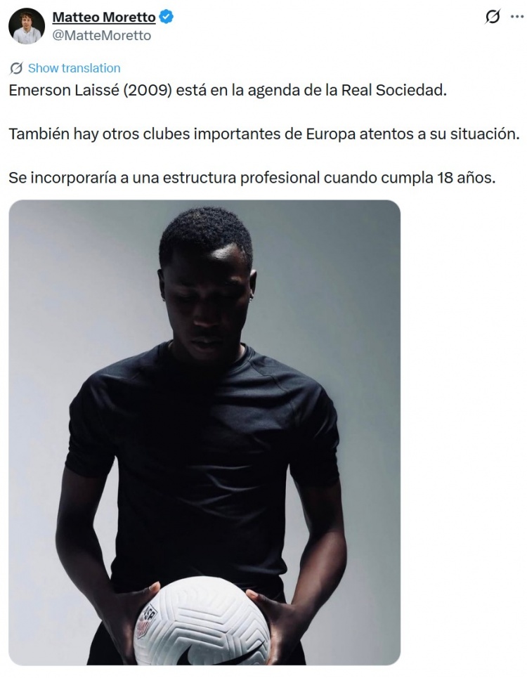 2月27日讯 据记者Matteo Moretto报道,16岁小将埃默松·莱塞已进入皇家社会的引援名单,此外欧洲其他球队也在密切关注他的情况。 这名小将会在年满18岁时加入职业球队。