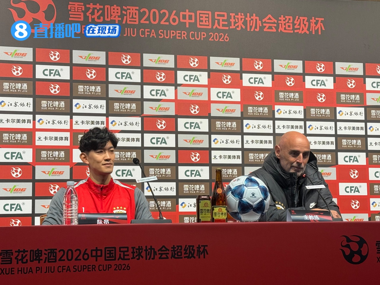 02月28日讯 超级杯决赛上海海港vs北京国安赛前新闻发布会,海港主帅穆斯卡特携颜骏凌出席。