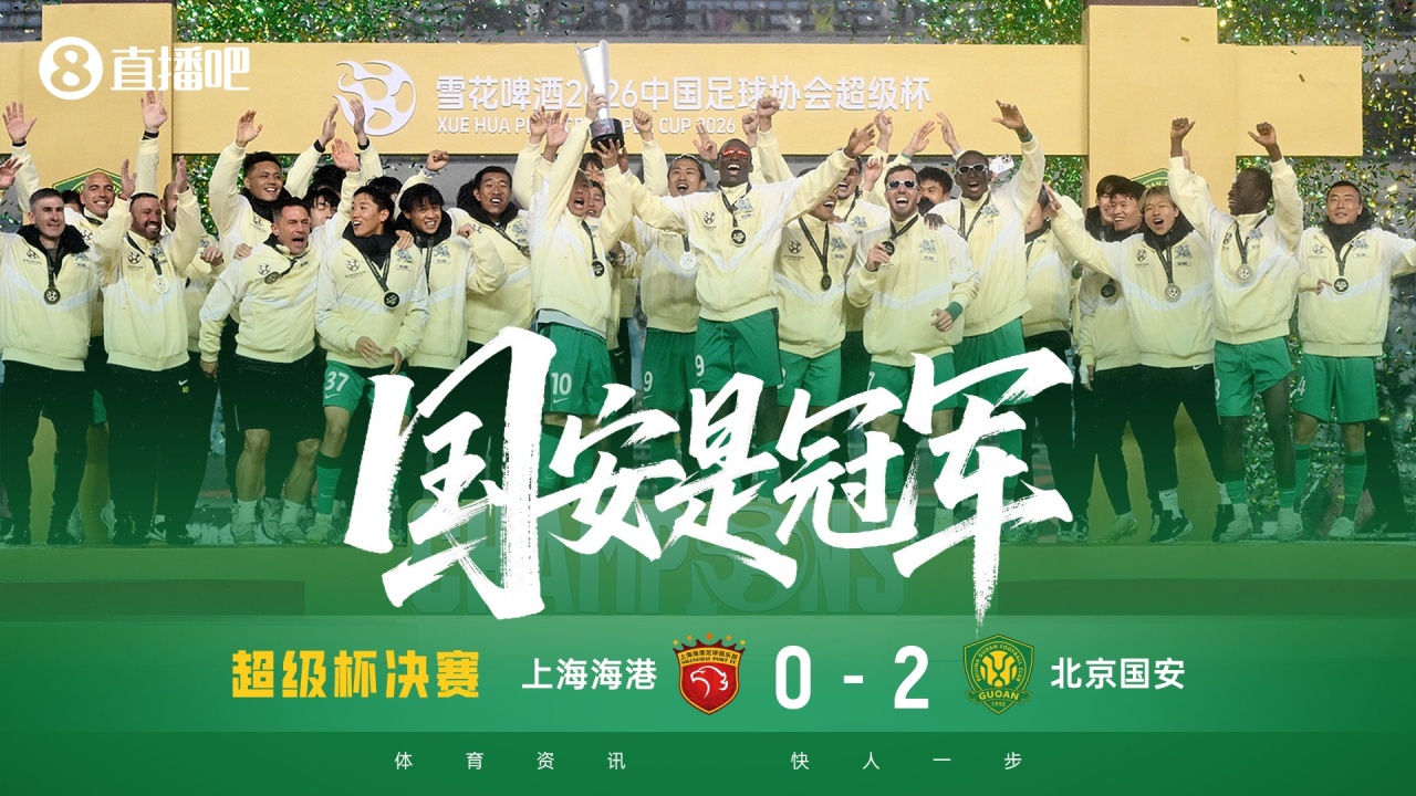 03月01日讯 2026中国足球协会超级杯,北京国安2-0战胜上海海港,夺得超级杯冠军。这也是国安队史第3座超级杯冠军,在超级杯夺冠次数排行榜上排名第3。