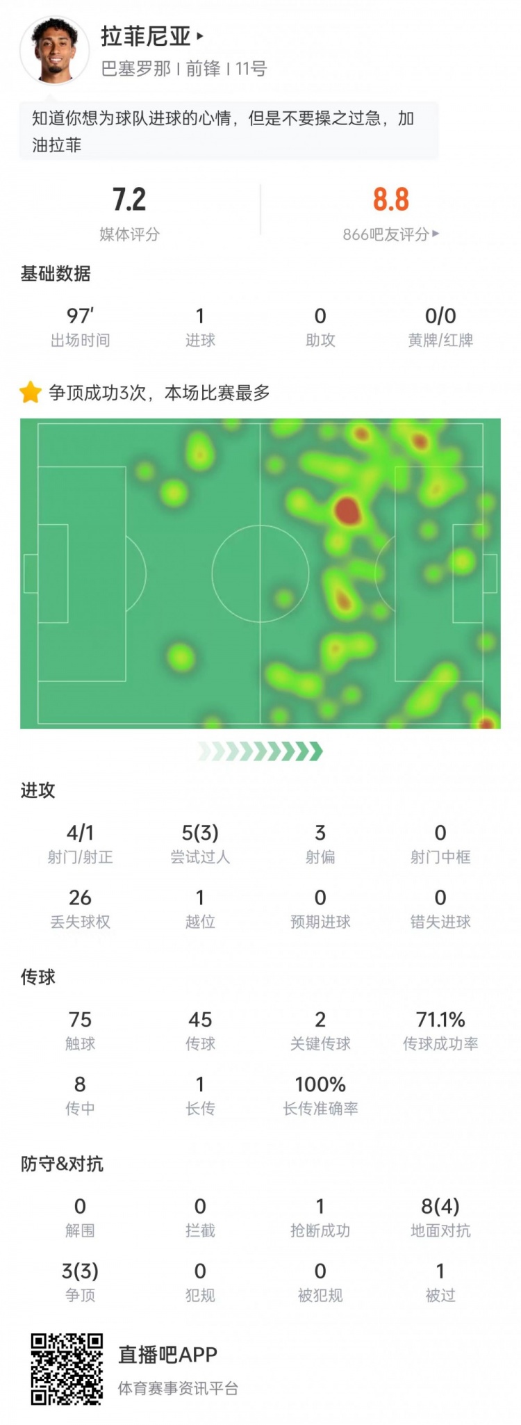 拉菲尼亚本场比赛数据: