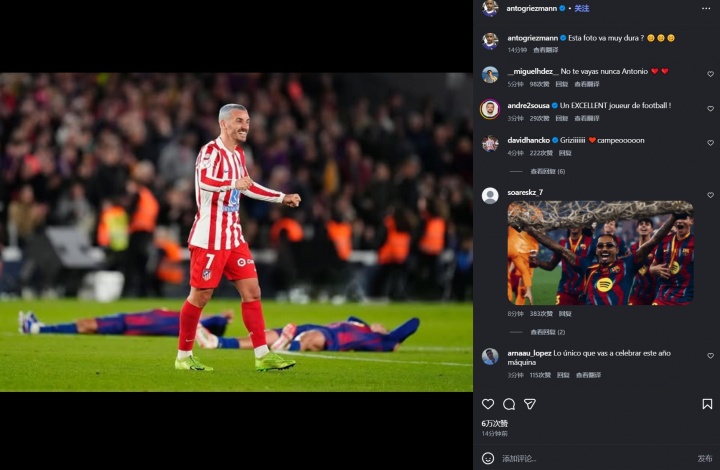 格列兹曼照片的配文是:这照片太狠了。
